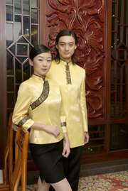 工服定制 高端酒店工服男女士 黃色長(zhǎng)袖酒店工服